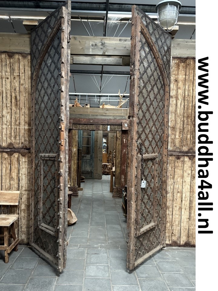 Deze imposante deuren worden momenteel mooi tentoongesteld in onze winkel in Roggel. Dankzij de scharnierpunten aan beide deuren is deze makkelijk te plaatsen.
