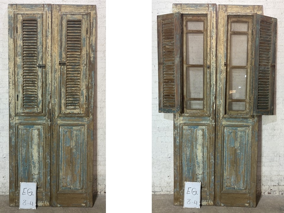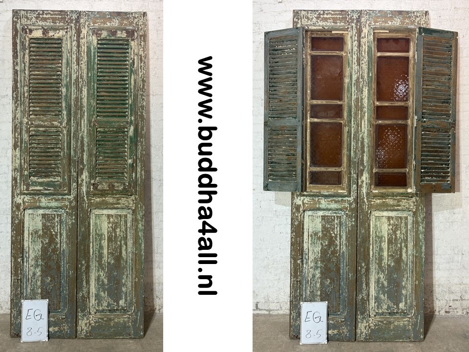 Oude franse deuren met glas deurtjes en louvre luiken EG8-2