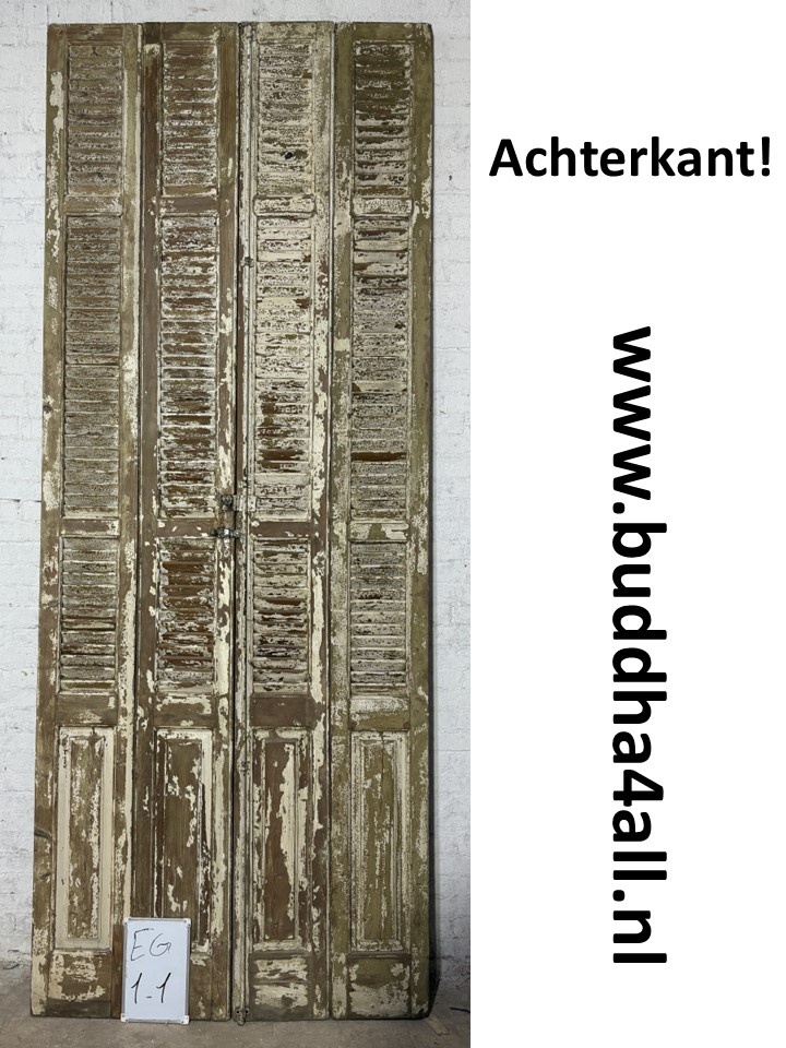 Hoge franse louvre luiken / deuren EG1-1 Aantal: € 360,00 Afmeting EG1-1: 307 cm hoog x 121 cm (voor alle 4 delen) x 5 cm dik De prijs is voor alle 4 delen samen.