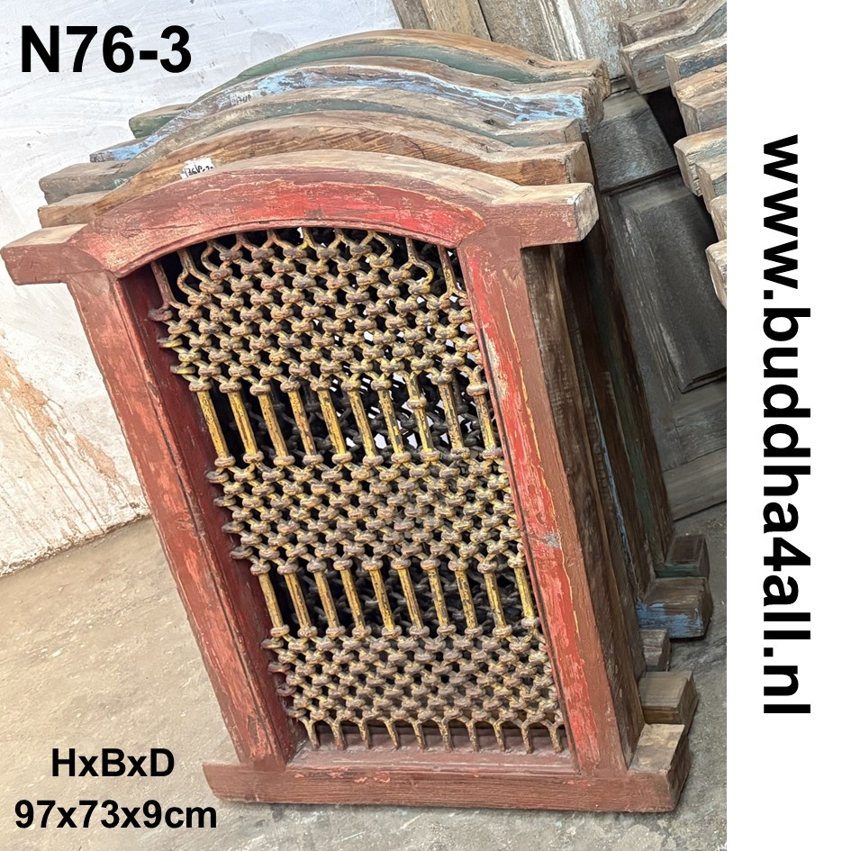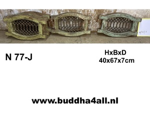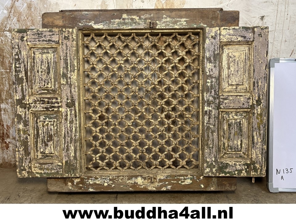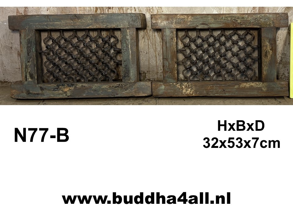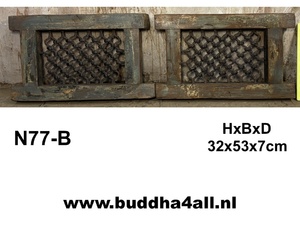 Oude tempel raam India N114-2 Aantal: € 569,00 Een oud raamwerk van een tempel, gemaakt van teakhout met ijzeren tralies. Het is een antiek stuk uit India Afmeting N114-2: 91 cm hoog x 70 cm breed x 14 cm diep Oud tralies raam N76-1 Aantal: € 439,00 We hebben 10 stuks! Afmeting N76-1: 97 cm hoog x 73 cm breed x 9 cm diep Metals Jali window panels India N135-A Aantal: € 569,00 Afmeting N135-A: 84 cm hoog x 74 cm breed x 13 cm diep Antieke teakhout raam met ijzer N76-3 Aantal: € 369,00 We hebben 5 stuks! Afmeting N76-3: 97 cm hoog x 73 cm breed x 9 cm diep Antieke Indian raamluiken N77-i Aantal: € 239,00 Afmeting N77-i: 42 cm hoog x 67 cm breed x 7 cm dik We hebben er maar 2 stuks! Afmeting is per stuk. De prijs is per stuk. Antieke kleine raam shutter met ijzer N77-A Aantal: € 219,00 We hebben 15 stuks op voorraad! De prijs is per stuk! Afmeting N77-A: 44 cm hoog x 70 cm breed x 10 cm dik Oude tempel ramen met ijzeren / raamluiken N77-D Aantal: € 259,00 We hebben 19 stuks! Afmeting is per stuk. De prijs is per stuk. Afmeting N77-D: 49 cm hoog x 68 cm breed x 7 cm dik Antieke Indian Jali teak hout raamluiken N135-D Aantal: € 569,00 Afmeting N135-D: 84 cm hoog x 74 cm breed x 12 cm diep Indian tralies raam N76-2 Aantal: € 439,00 We hebben 10 stuks! Afmeting N76-2: 97 cm hoog x 73 cm breed x 9 cm diep Vintage Indian window shutters N77-F Aantal: € 249,00 Afmeting N77-F: 51 cm hoog x 63 cm breed x 7 cm dik We hebben er maar 2 stuks! Afmeting is per stuk. De prijs is per stuk. Antieke tralies raam N77-J Aantal: € 239,00 Afmeting N77-J: 40 cm hoog x 67 cm breed x 7 cm dik We hebben 5 stuks! Afmeting is per stuk. De prijs is per stuk. Oud tralies wandpaneel N115-B Aantal: € 439,00 Afmeting N115-B: 89 cm hoog x 74 cm breed x 8 cm diep Vintage kleine tralies wanddecoratie N77-B Aantal: € 139,00 Afmeting N77-B: 32 cm hoog x 53 cm breed x 7 cm dik We hebben er maar 2 stuks! Afmeting is per stuk. De prijs is per stuk. Oude tralies raamluik N115-A Aantal: € 319,00 Afmeting N115-A: 68 cm hoog x 64 cm breed x 10 cm dik Jaali vintage teak wood window flame N135-C Aantal: € 569,00 Afmeting N135-C: 84 cm hoog x 74 cm breed x 12 cm diep Antieke luchtrooster / wanddecoratie N77-G Aantal: € 289,00 Afmeting N77-G: 58 cm hoog x 71 cm breed x 7 cm dik Oude raamluiken met ijzeren N135-B Aantal: € 569,00 Afmeting N135-B: 84 cm hoog x 74 cm breed x 12 cm diep