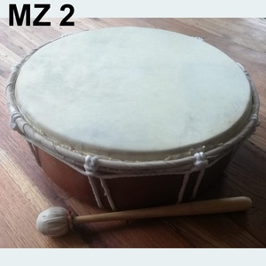 Floor drum van het merk Maxtone. In de drum is een lamp bevestigd, waardoor deze nu als vloerlamp / spotlight op driepoot wordt.