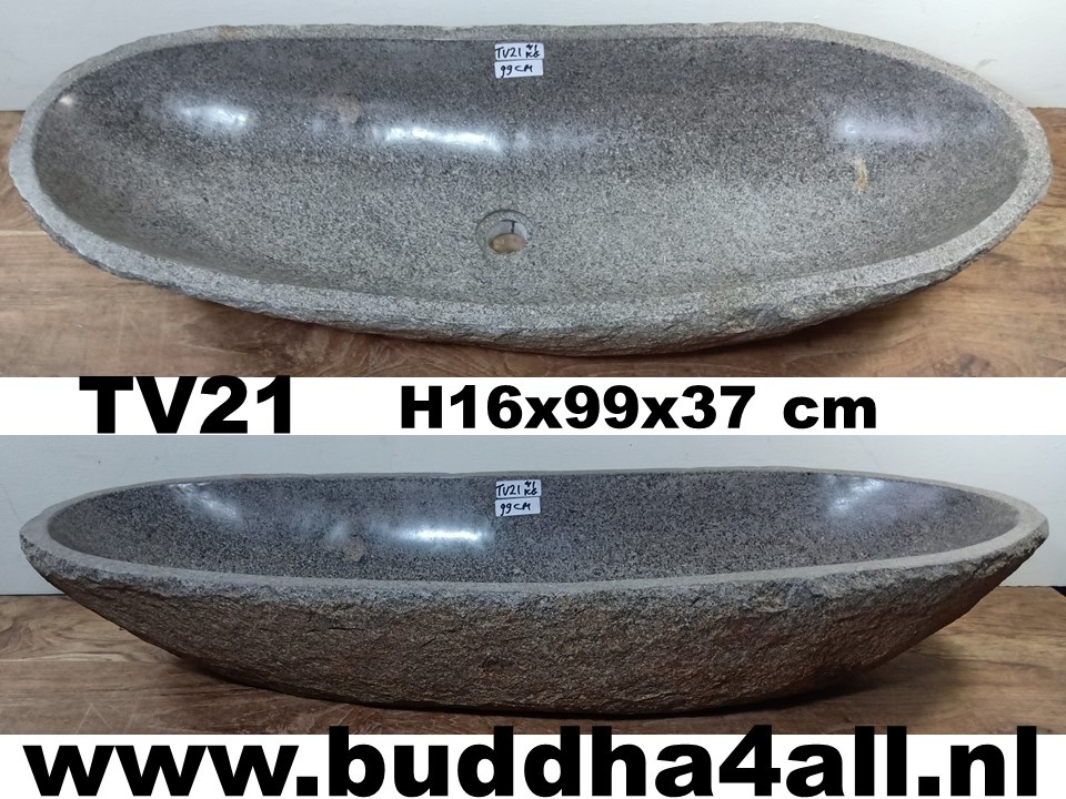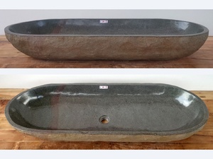 Riviersteen trog wasbak - lang ovaal model