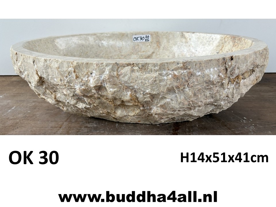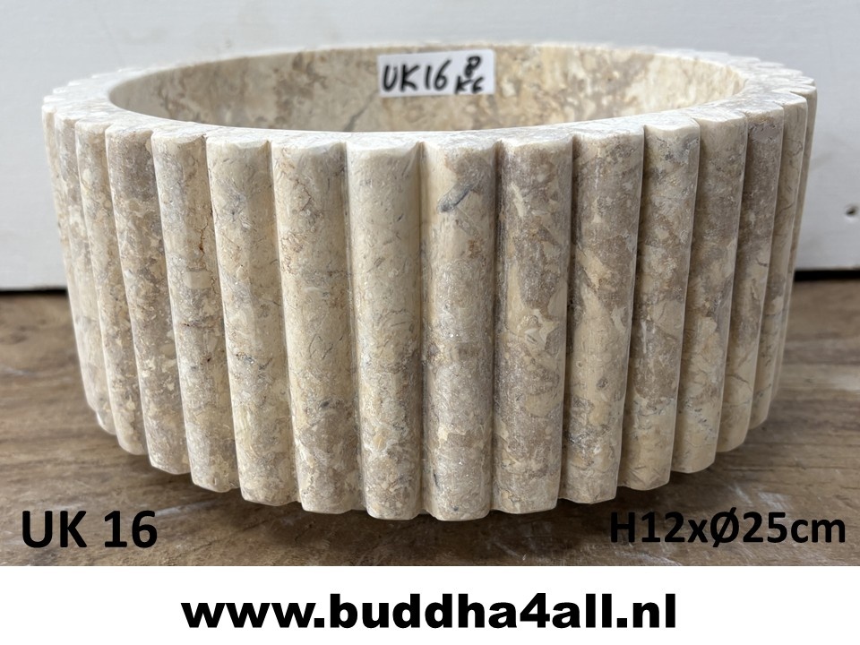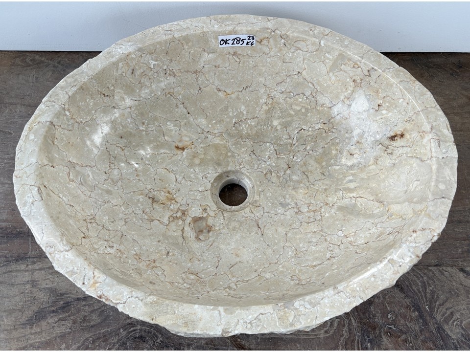 Onze wit / beige waskommen van marmer hebben we in alle gebruikelijke formaten. De kleinste uitvoeringen zijn zeer geschikt als toiletfonteintje. Verder hebben we deze crèmekleurige wasbakken in alle gewenste maten voor de badkamer. Maar ook voor de slaapkamer, grotere waskommen en wasbakken voor de badkamer, voor de bijkeuken of een buitenruimte.