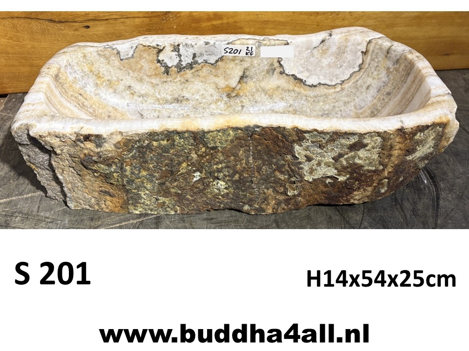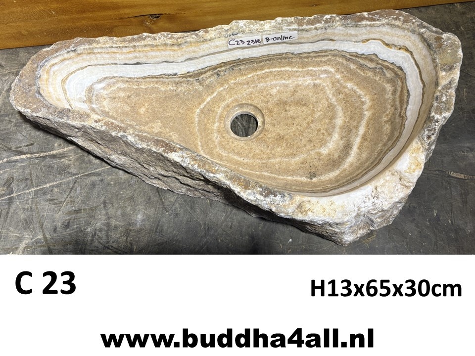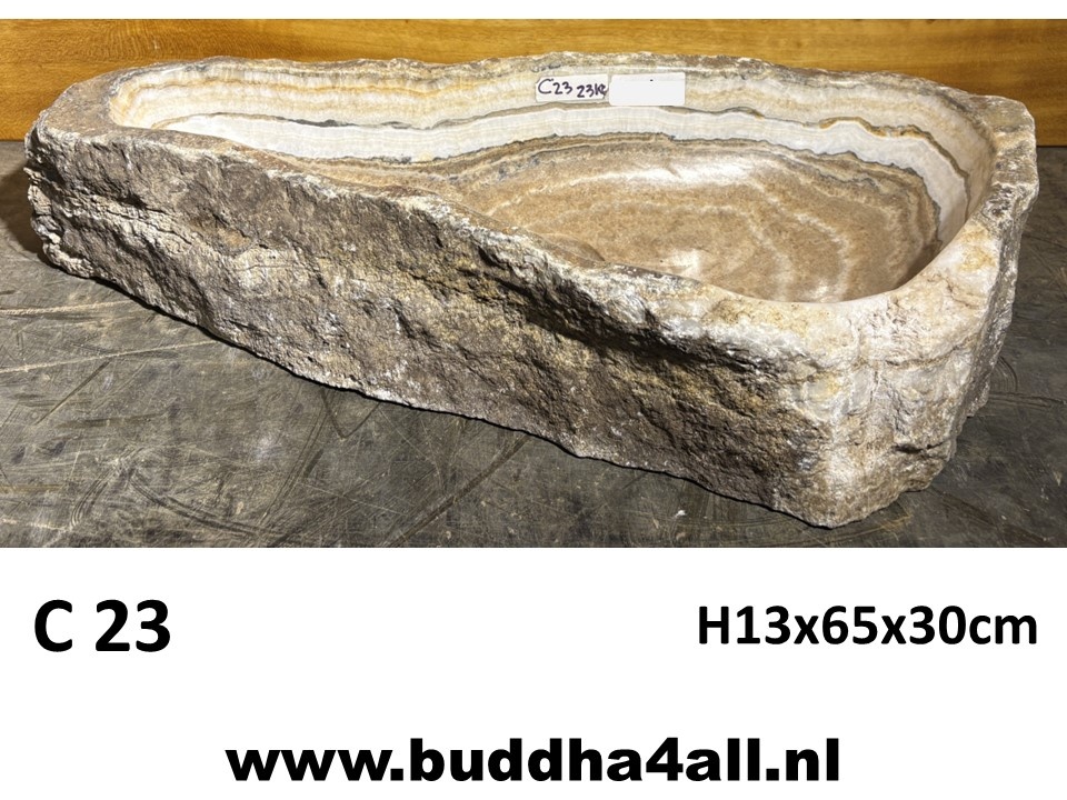 Hele bijzondere waskommen gemaakt van onyx steen. Dit gesteente wordt gekenmerkt door de afwisseling van kleur in de vorm van banden.