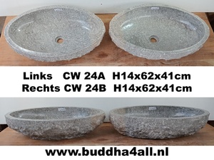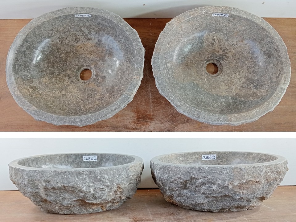 Twee waskomen uit dezelfde steen grijs/wit/beige CW191